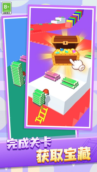 2.完成关卡,获取宝藏。每个关卡都隐藏着神秘宝箱,内含稀有皮肤、加速道具等珍贵奖励,收集控玩家绝对不容错过。