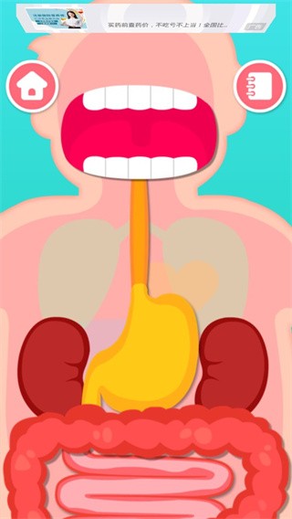 1、器官认知:真实模拟口腔、肠胃、肾脏等器官,轻松学习生理知识;游戏采用医学级3D建模,精确还原人体消化系统结构,让小朋友在游戏中获得准确的科学认知。