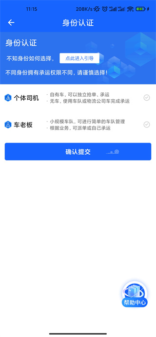 **进行身份验证** 改变完车号后,司机需要进行身份验证。司机需拍摄本人身份证照片,按照要求上传和提交。