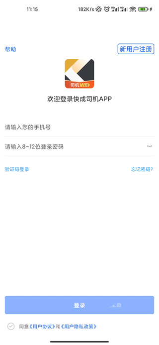 **登录快成司机APP** 在车机上登录快成司机APP。
