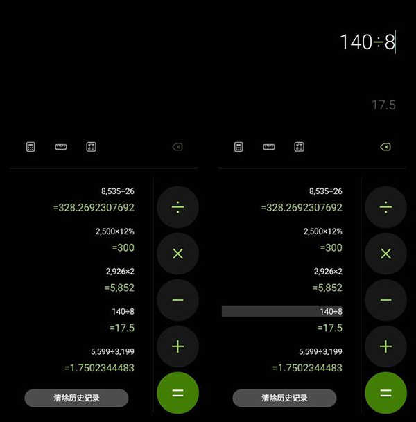 点击你就可以看到你的使用历史,点击记录还会直接显示在数字显示区域,方便你重新计算;