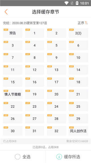 选择要下载缓存的章节,点击右下角下载所选即可完成缓存漫画,进行离线阅读。