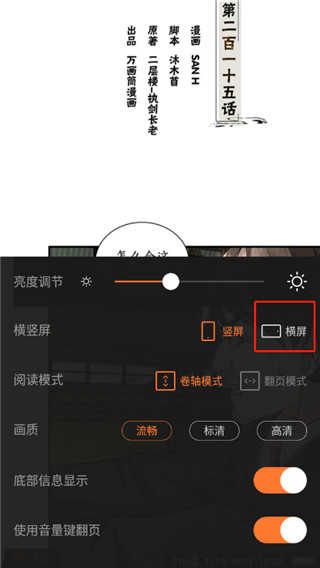 点击方框内横屏即可取消竖屏模式,不取消的话就是竖屏阅读。