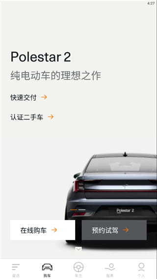 点击购车,有在线购车和预约试驾功能,还可以快速交付和认证二手车;