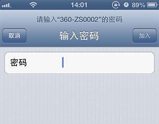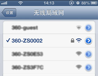 在手机上将WiFi设置打开,选择360-xxxx,输入密码连接