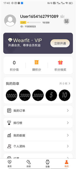点击我的,里面为用户提供了勋章、订单、数据、个人资料等等信息。