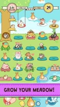 2、合并动物将获取经验值,这样您就可以升级并让您的草地增加,随着等级提升还能解锁更多装饰元素;