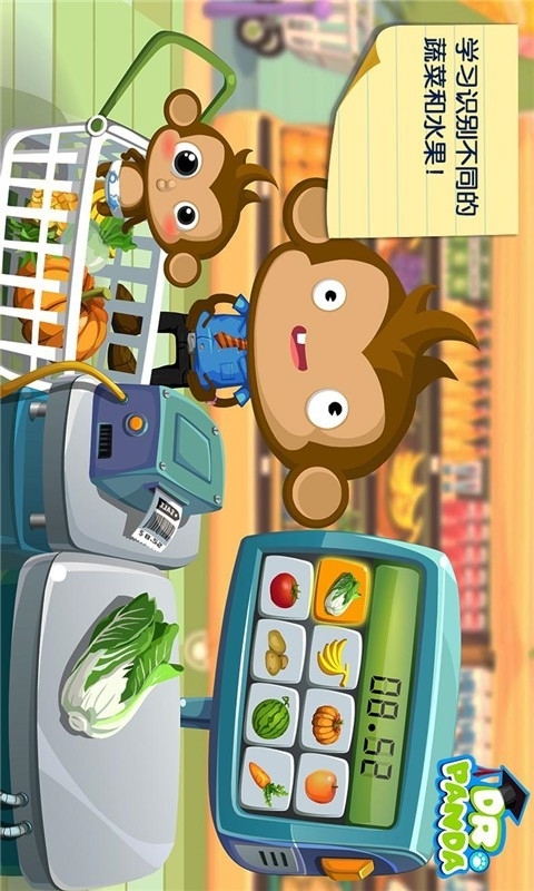 在熊猫博士超市这个充满童趣的虚拟世界里,孩子们将通过一系列精心设计的互动环节全面了解超市运营流程。从迎接可爱的动物顾客开始,小朋友需要根据购物清单准确找到商品,使用卡通秤具称量水果蔬菜的重量,还要学习整理货架和分类收纳货箱。这些寓教于乐的小游戏不仅能培养孩子的观察力和动手能力,还能在模拟购物过程中建立对数字和货币的初步认知,为日后生活技能的培养打下良好基础。