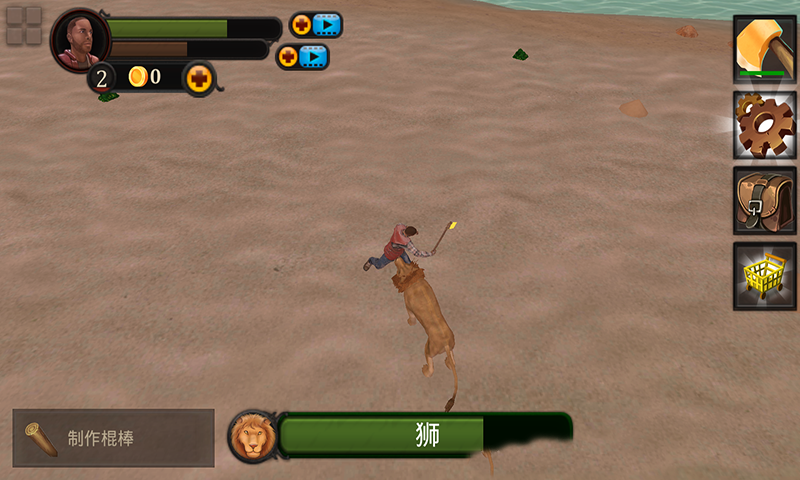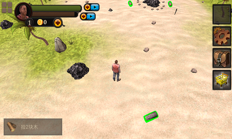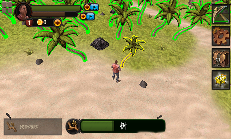 3、砍伐树木,寻找可以利用的资源。资源分布遵循真实生态规律,比如椰子树多生长在沙滩附近,而矿石则多出现在山地;