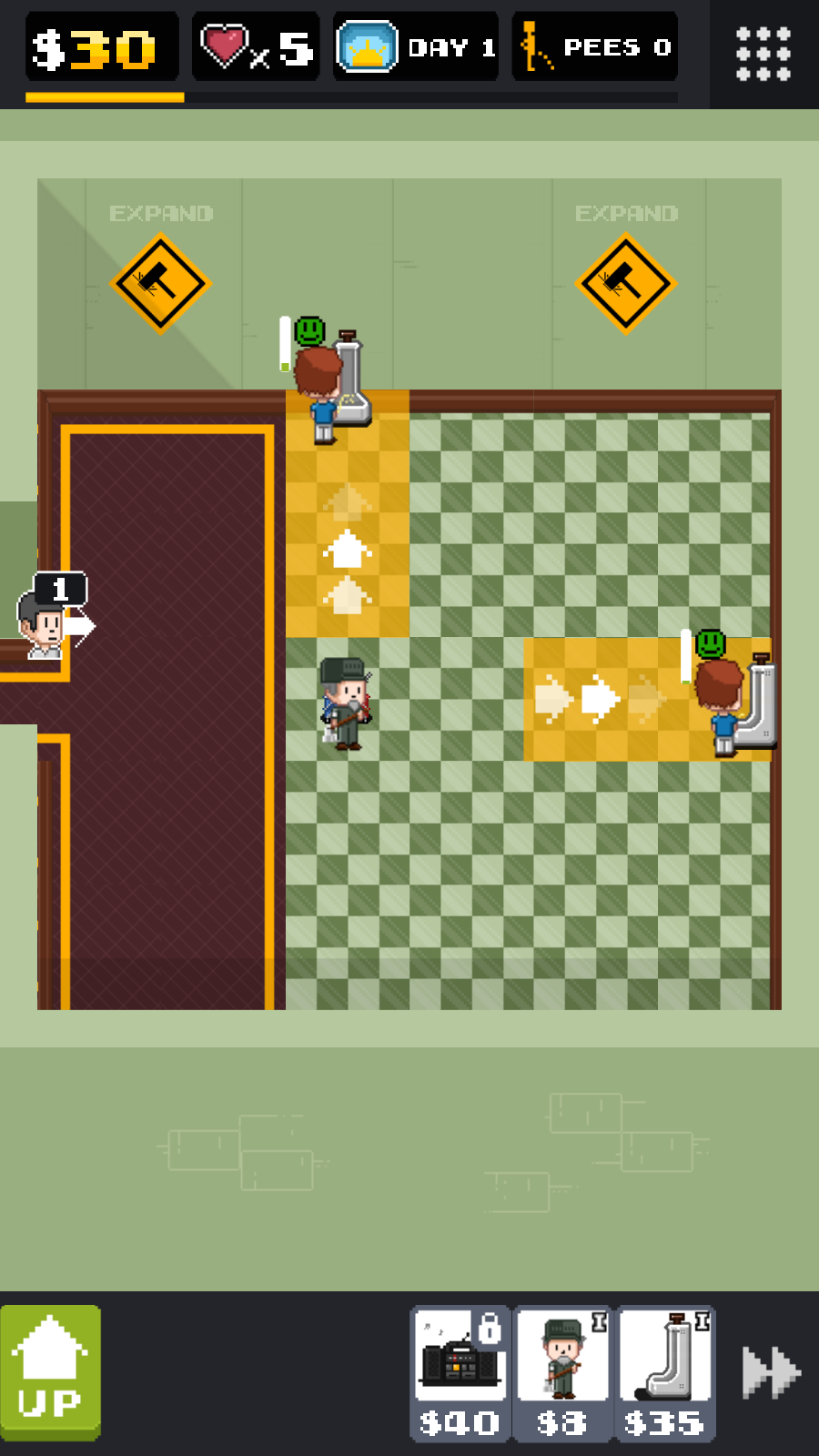 在这款充满挑战的时间管理游戏中,你将全权负责经营一家繁忙的男厕所。面对源源不断的顾客,必须快速扩建小便池设施并合理规划空间布局,避免出现顾客因等待过久而不满的情况。通过安装电视机、收音机等娱乐设施能有效提升顾客满意度,而精准的拖拽操作可以将小便器快速调配到需求区域。游戏采用动态难度设计,后期关卡需要玩家同时处理清洁维护、设备升级和人员管理等多重任务,只有具备出色战略思维和快速反应能力的经营者才能在这个疯狂厕所帝国中立于不败之地。