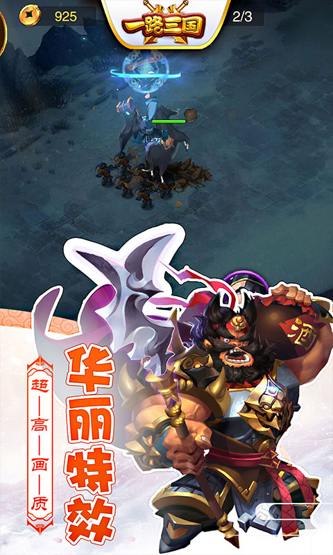 1、一路三国画面明快小清新,战斗恢宏超酷炫;游戏采用独特的日韩Q版美术风格,在保留三国历史厚重感的同时,为角色注入了更多现代审美元素。战斗场景采用全3D建模,配合华丽的技能特效,让每一场战斗都充满视觉冲击力。