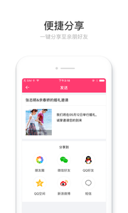 2.便捷分享:支持微信、朋友圈、QQ、QQ空间等多种社交平台一键分享功能。让您轻松邀请亲朋好友共同见证重要时刻,分享幸福与喜悦。