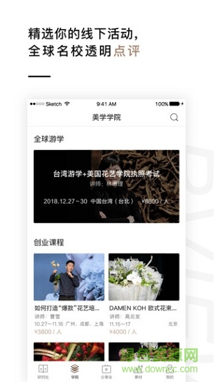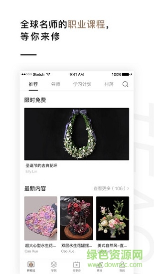 2、汇集国际知名花艺大师的专业课程体系,包含花艺设计、商业运营等多元化内容;