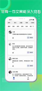 3、情感语录库采用心理学分类体系,既有治愈系暖心句子缓解压力,也有现实向扎心语录引发思考,每句文案都标注适用场景与情感指数,帮助用户精准表达当下心境。