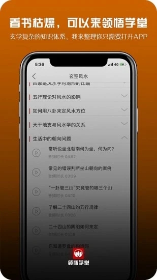 看书枯燥,可以来领悟学堂。平台独创的"情景教学法"将传统文化知识与现代生活场景相结合,让学习过程充满趣味性。国学复杂的知识体系,我来整理你只需要打开APP,系统化的课程分类和知识图谱功能,帮助用户快速建立完整的知识框架。学习《国学》从未如此轻松,智能记忆功能可以自动记录学习进度,并提供个性化的复习提醒。传统文化学习者必备的学习型APP,我们提供从入门到精通的完整学习路径。欢迎来领悟学堂,这里不仅有专业的知识讲解,还有丰富的实践案例和互动练习。耳听,心记,记不住重放!我们的播音员没有口音,所有音频内容都经过专业录制和后期处理,确保声音清晰悦耳。无实战,不风水,学真知,每门课程都配有对应的实践任务,让用户能够学以致用。实战派风水师亲自为你授课,只说有用的,只说能用的,拒绝空谈理论,专注实用技巧。学习不孤单,社群了解一下,平台活跃的学习社区汇聚了来自全国各地的传统文化爱好者。开发团队就在社群,建议提得出,想法聊得透,问题解的懂,用户反馈会直接影响到产品的迭代方向。