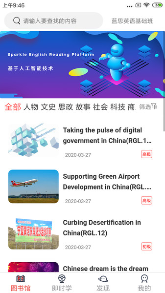 1、非常丰富的英语学习资源,满足所有用户学习的需求。资源类型涵盖视频课程、音频资料、电子书籍、模拟试题等,内容涉及日常生活、商务办公、学术研究等多个领域,打造全方位的英语学习环境。