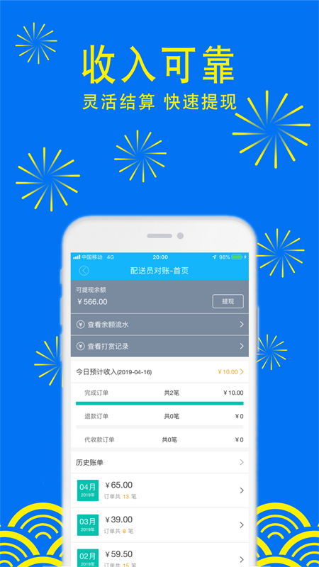 3.业务覆盖全国200多个城市,订单资源丰富,确保您随时都能接到合适的配送任务;