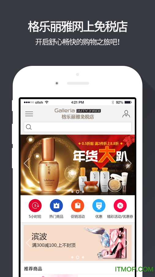3.独到完美的服务,高端奢华的风格,精彩纷呈的游购体验!平台定期举办韩国美妆大师直播课堂、新品首发预售等特色活动,让购物充满趣味性。