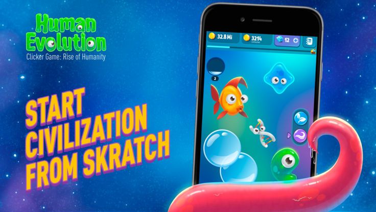 1、游戏开创性地将人类发展史以轻松有趣的方式呈现,让玩家在娱乐中学习人类文明演进的各个关键节点。2、精心设计的进化树系统完整展现了从单细胞生物到现代人类的演化历程,每个阶段都配有详细的科普说明。3、创新的玩法机制将生物进化与太空探索完美结合,打破了传统休闲游戏的局限。4、游戏对细节的打磨令人惊叹,从DNA的螺旋结构到太空飞船的每个部件,都力求科学准确又富有美感。