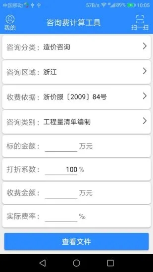 咨询费计算app是一款专为工程造价行业打造的智能计算工具,能够帮助用户快速准确地完成各类咨询费用核算。该应用全面覆盖全国各省市的收费标准,支持施工预算编制、投标报价分析、竣工结算审核、工程清算单制作等全流程造价计算需求。计算结果可直接应用于正式文件,大幅提升工作效率。其简洁直观的操作界面配合强大的计算引擎,让复杂的造价咨询工作变得简单高效,是工程管理人员不可或缺的得力助手。