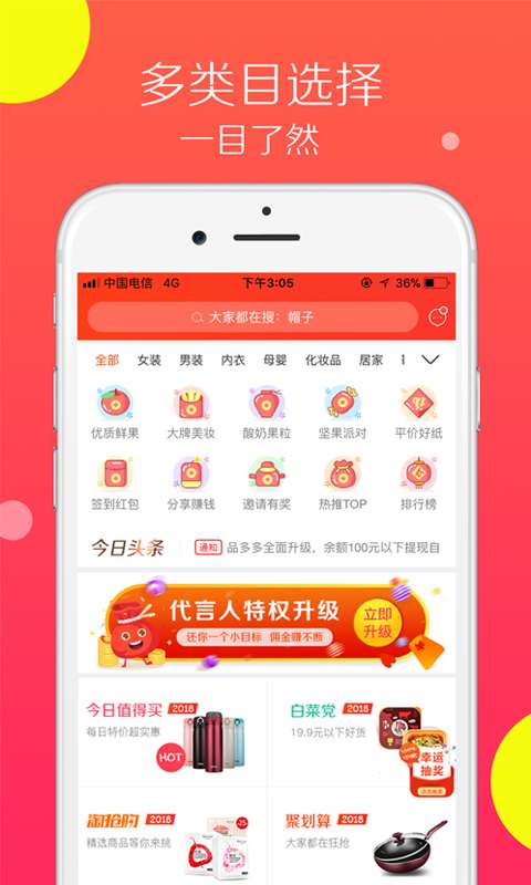 【多】涵盖200+细分商品类目,从母婴用品到老年保健品应有尽有。独创的"场景购"模式可按"开学季""搬家清单""健身计划"等生活场景智能搭配商品组合。