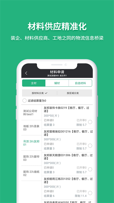 2.材料申报:智能化物料管理系统可实时监控库存状态,当材料不足时可直接通过APP申报。系统自动生成采购清单,避免人工统计误差,真正实现省时省力更省心。