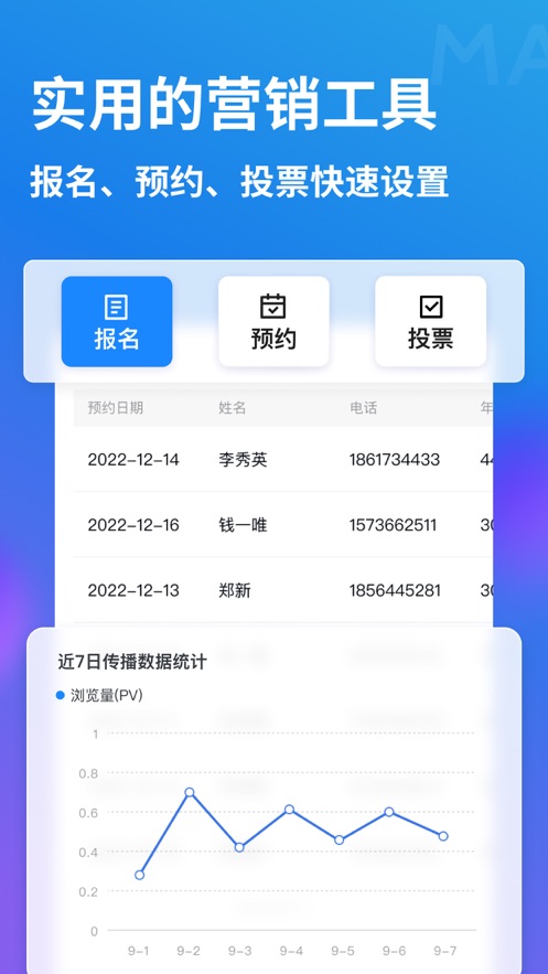 3.针对企业用户特别开发了高级功能套件,包括客户信息收集表单、数据可视化分析工具等,帮助商家建立完整的营销闭环,深度挖掘潜在客户价值。