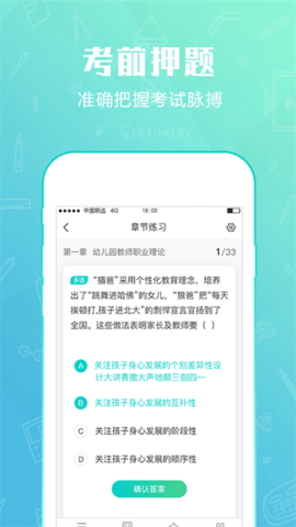 2、章节练习:按照教材章节和考试大纲精心编排练习内容,让用户能够循序渐进地掌握各个考点。每个章节都设有知识图谱,直观展示知识点之间的关联,帮助建立完整的知识体系。