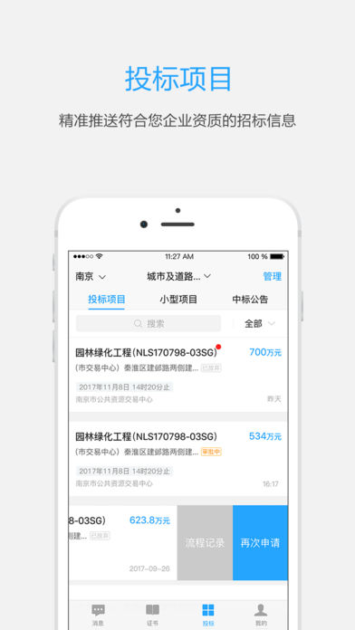 1.企业证书在线管理:支持各类工程资质证书的电子化存储与管理,实现一键查询和快速调用。2.证书有效期实时提醒:智能监控证书到期时间,提前预警避免资质失效风险。3.精准推送招投标信息:基于用户画像和大数据分析,个性化推荐匹配度高的招标项目。4.在线实时审批投标项目:简化审批流程,支持移动端快速完成项目审核。5.建筑工程类考试通知:及时更新各类工程资格考试信息,助力从业人员职业发展。6.行业政策与公示公告:汇集最新政策法规和行业动态,帮助企业把握政策风向。