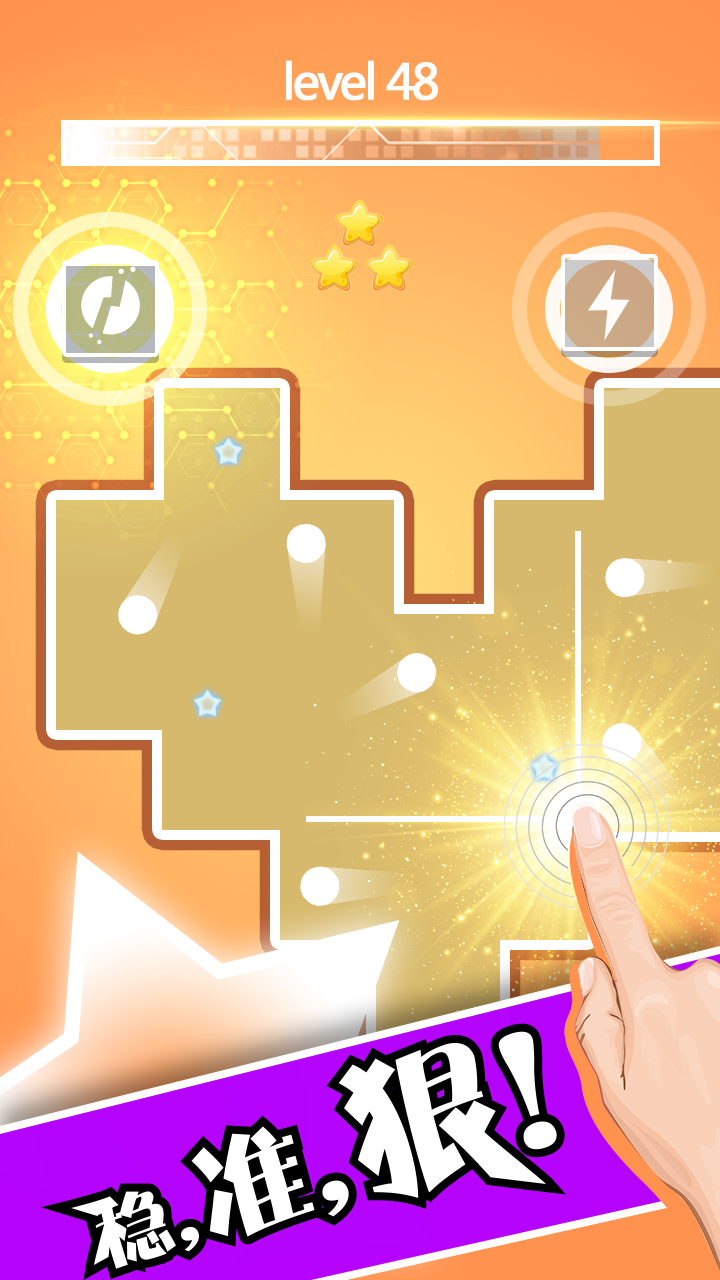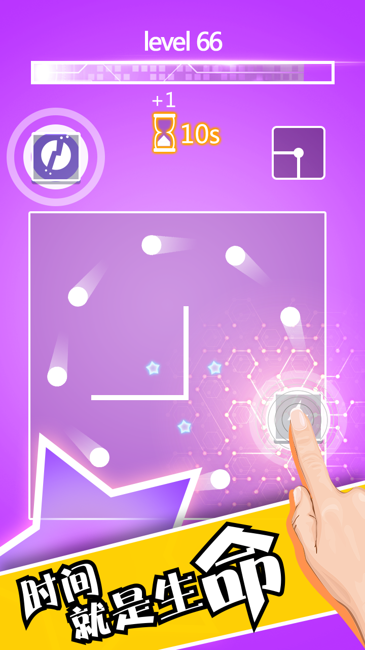 1、小球的速度根据关卡的进度越来越快,数量越来越多,后期关卡中甚至会出现多个小球同时运动的情况,大大增加了游戏难度。