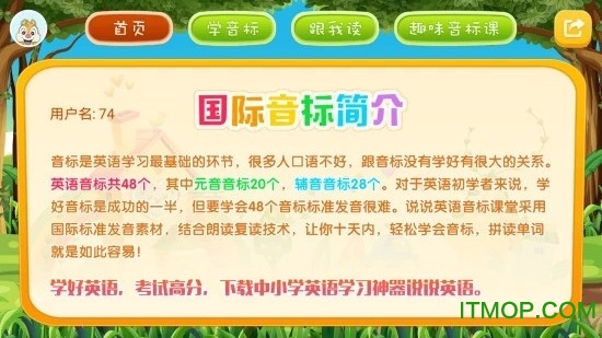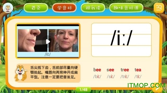 英文英语音标app是一款专为英语初学者设计的发音辅助工具,采用Q萌可爱的画风搭配多样化的教学方式,从多个维度帮助用户轻松掌握英语发音技巧。该应用涵盖了从基础音标到实用短句的全面内容,包含48个国际音标、300个高频词汇和9大情感主题分类,支持精准检索功能,让学习过程更具针对性。应用体积小巧不占内存,操作界面简洁友好,无论是儿童还是成人都能快速上手,现已在IT猫扑平台开放下载。