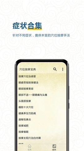 穴位按摩宝典是一款专业的中医经络穴位学习应用,为用户提供全面系统的中医知识库。在这里,您可以深入了解人体经络走向、穴位分布及其对应功效,通过精准的穴位按摩来缓解各种常见症状。应用内置智能搜索功能,只需输入关键词即可快速获取相关穴位信息,包括位置图解、按摩手法及主治病症等实用内容。无论是想学习中医基础理论,还是寻求日常保健方法,这款应用都能满足您的需求。平台持续更新专业中医资讯和艾灸教学视频,让您随时随地掌握最权威的中医养生知识。