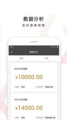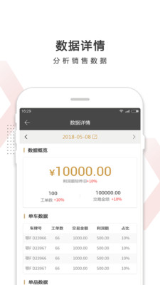 (1)数据分析版块提供强大的统计功能,支持按日、按月查询所加盟车辆的工单数、交易额、利润额等核心经营数据,并生成可视化报表,便于分析业务趋势;