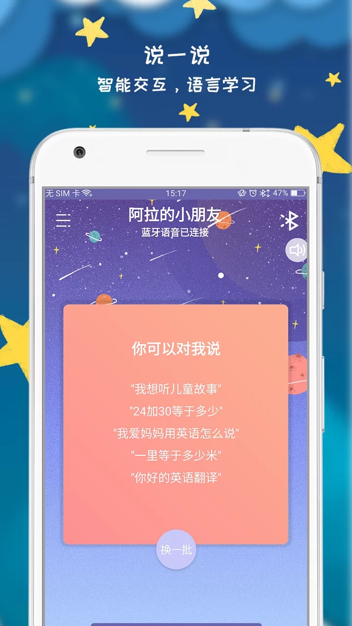 3、互动陪伴,按键唤醒、用APP和音箱设备对话 - 支持声控唤醒和物理按键双重操作模式,孩子可以随时与智能设备进行知识问答、点播故事等互动。家长端APP会生成详细的互动报告,记录孩子的兴趣偏好和认知发展轨迹。