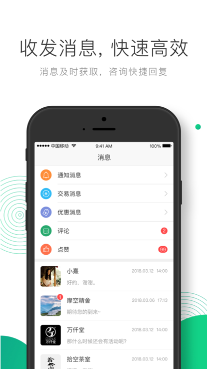 ·APP推送通知、交易、优惠、评论与点赞消息,确保商家第一时间获取最新动态,不错过任何商机;