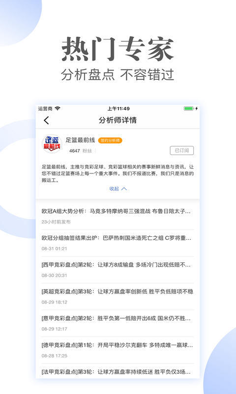 用户可以自由选择关注喜欢的足球专家和资深分析师,建立专属的足球资讯圈。订阅后,系统会优先展示这些作者的最新分析文章和视频内容。平台还提供私信交流功能,让你有机会直接向专家提问请教。通过订阅功能,你可以打造个性化的足球内容中心,与志同道合的球迷一起分享对足球的热爱。