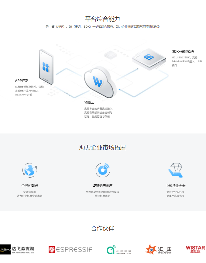 中移和物是基于中国移动OneNET物联网平台开发的SaaS服务系统,它不仅连接了终端用户与智能设备,更构建了一个完整的物联网生态系统。该平台整合了硬件接入、云端数据存储、设备管理、应用开发等核心功能,为智能硬件厂商提供从产品设计到市场推广的全流程支持。依托中国移动强大的网络资源和用户基础,中移和物能够实现海量设备的安全稳定连接,并通过大数据分析为用户提供个性化服务。无论是家庭用户还是企业客户,都能在这个平台上找到适合的智能化解决方案。