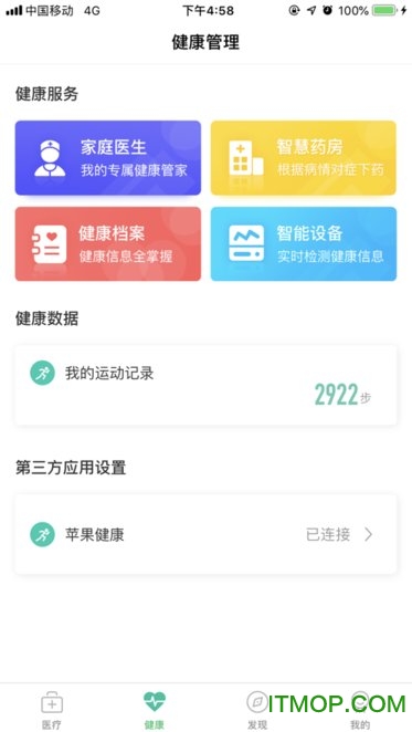 健康档案:支持居民查看个人健康档案,包括签约家庭医生信息、就诊信息、慢病随访记录以及老年人健康评估信息;档案数据来自全市医疗机构,实现诊疗信息互联互通。