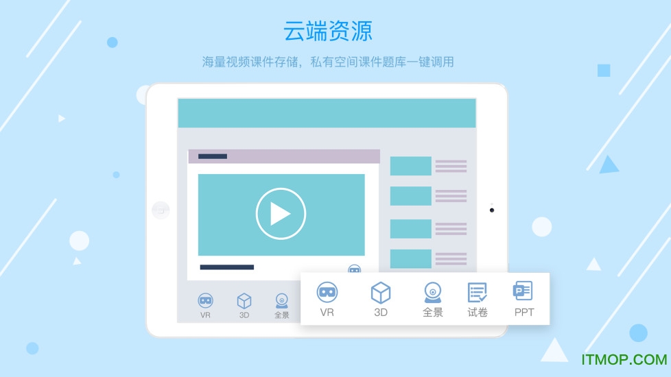 云端资源,海量视频课件存储、私有空间课件题库一键使用,企业版用户可定制专属知识库与品牌露出