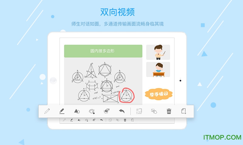 双向视频,师生兑换如面,多通道传输画面流程身临其境,美颜滤镜与虚拟背景让线上教学更专业