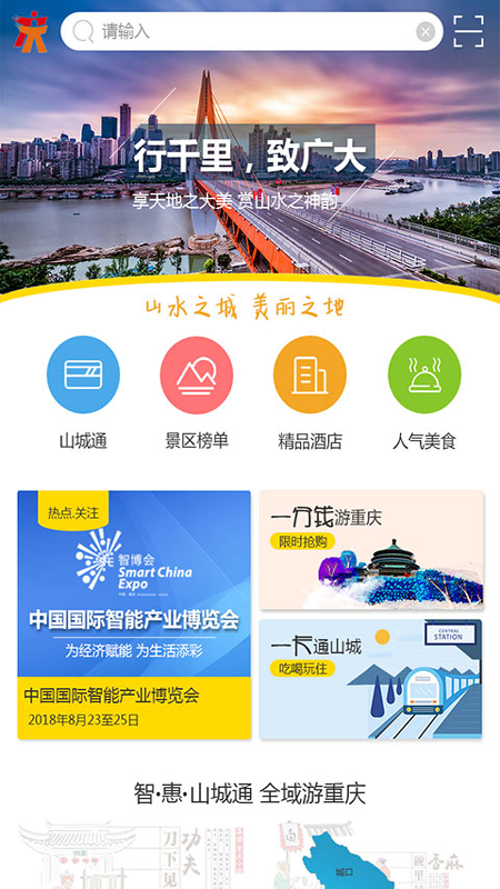 山城通APP是重庆市政府官方打造的智慧旅游服务平台,致力于为市民和游客提供一站式旅游解决方案。平台整合了重庆全域的旅游资源,涵盖餐饮住宿、交通出行、景点游览、购物娱乐等六大核心板块,通过数字化手段提升旅游体验。作为重庆市旅游发展委员会指定的官方服务平台,山城通采用先进的银联支付系统,实现"一码通城"的便捷服务,让用户享受安全高效的智慧旅游新体验。