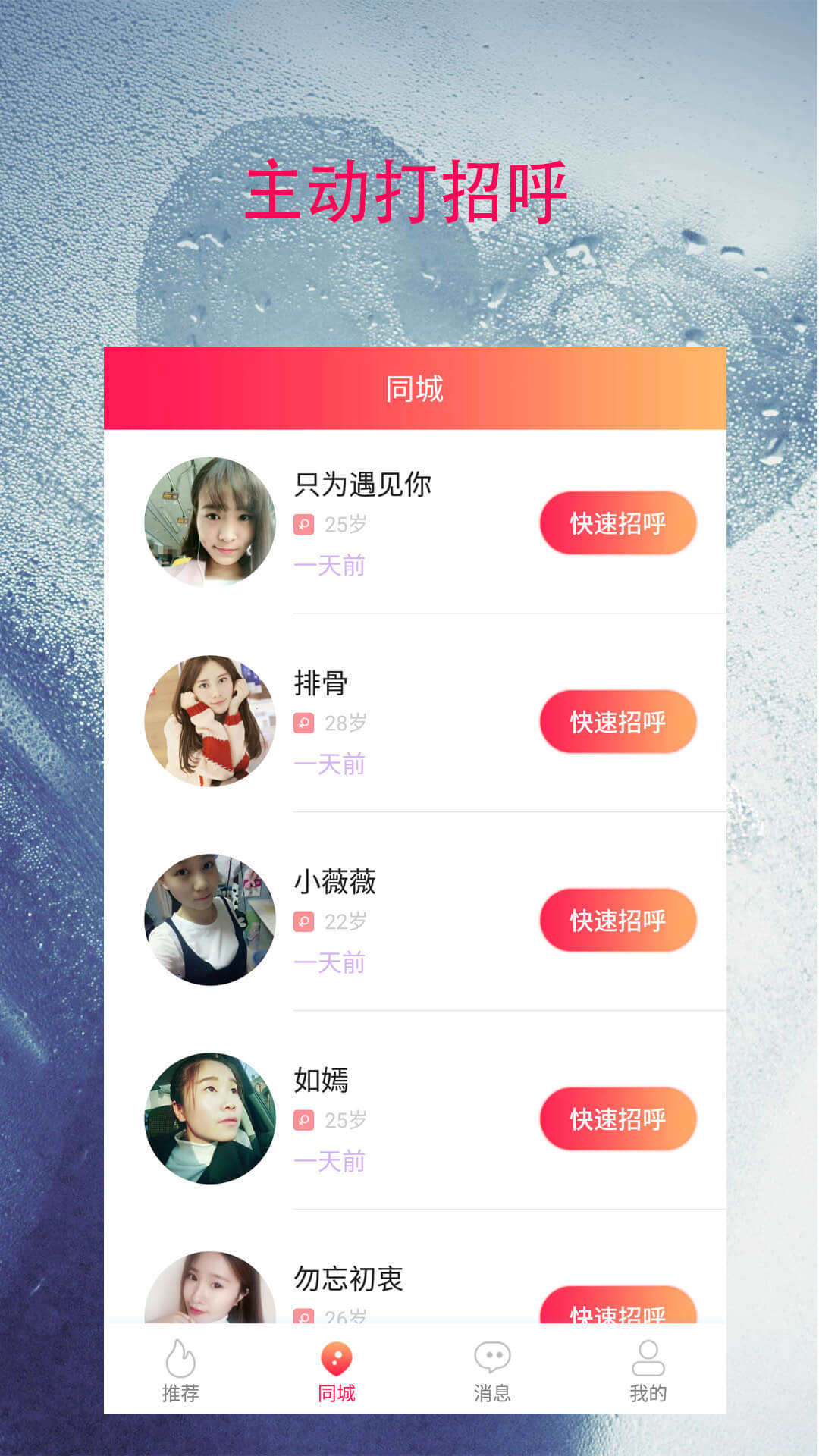 【快速招呼】创新的"一键招呼"功能让表白不再困难,内置多种搭讪话术和表情包,帮助您轻松破冰。看到心仪对象时,只需简单操作就能发起对话,大大提升交友成功率。