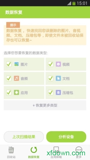 5、无需root您的手机,如果您的手机已经root,您可以享受到更好的使用体验:普通用户也能使用基础功能,root用户可获得更全面的恢复能力。