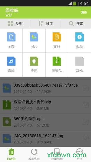 6、自动保存删除的图片、照片、文档、音视频、应用apk、压缩包等,您可以随时找回丢失的数据:支持超过50种文件格式的自动备份。