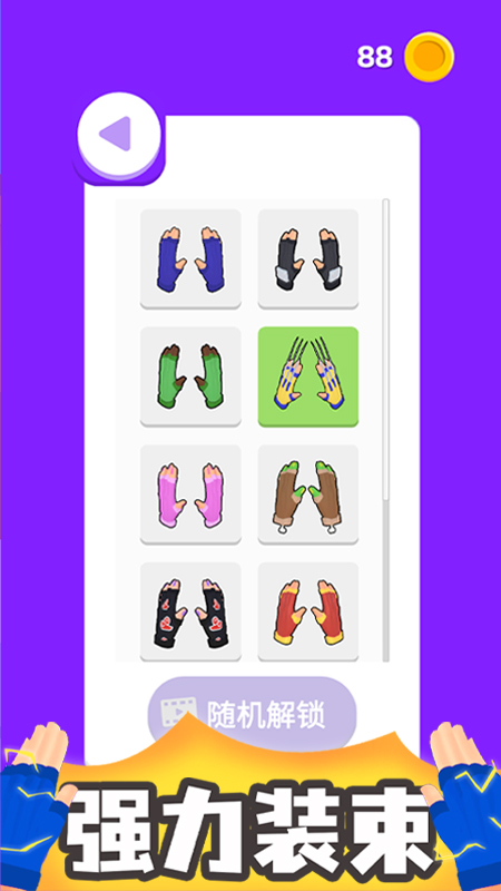 5、点击商城可以购买各种手套皮肤。商城内提供数十种风格迥异的手套皮肤,从传统的忍者护手到未来科技感十足的机械手套应有尽有。部分限定皮肤还会附带特殊的光效和音效,让忍术施展更加炫酷。游戏定期更新主题皮肤,保持玩家的新鲜感。