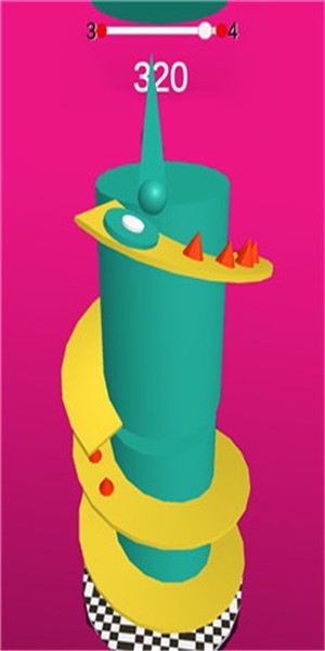 2、每一个关卡中都出现了一个螺旋轨道,你需要合理的操控,才能让小球不断的向下滚动。这些螺旋轨道不仅造型各异,还加入了动态变化元素,有些轨道会随着时间旋转或伸缩,大大增加了游戏的可玩性。