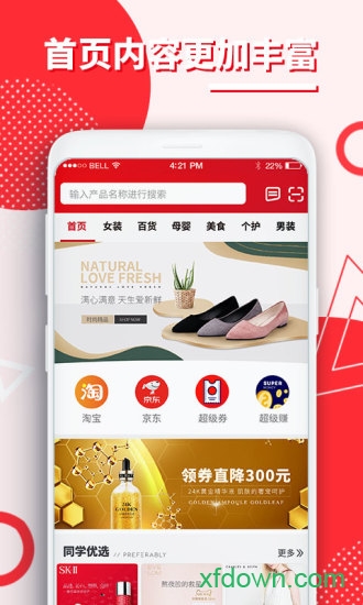 1.商品搜索,智能搜索引擎支持关键词、图片、语音等多种搜索方式,精准匹配海量商品库,让您快速找到心仪商品;