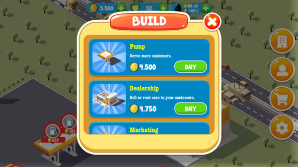 2、简单易上手的点击操作方式,轻松建设多个功能各异的服务站,为城市居民提供便捷的燃料服务;