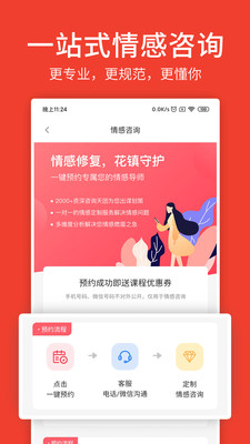 -【情感公开课】海量情感课程,自主学习,实现终身自我提升。课程内容涵盖亲密关系建设、沟通技巧、情绪管理等各个方面,由知名专家主讲,采用视频、音频、图文等多种形式,方便用户随时随地学习。