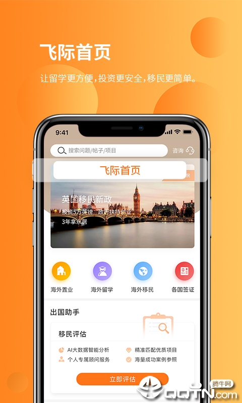 飞际是一家以移民、留学、出国为核心的多元化移民品牌公司,拥有多年行业经验和专业团队支持。我们不仅提供传统的移民留学服务,还整合了海外房产投资、税务规划等增值服务,打造全方位的出国生态链。平台采用智能化管理系统,确保每个服务环节都高效透明。无论您身处何地,只需轻点手机,就能享受与国际接轨的专业服务。飞际APP界面简洁友好,功能模块清晰,让复杂的出国流程变得简单易懂,真正成为您海外生活的得力助手。